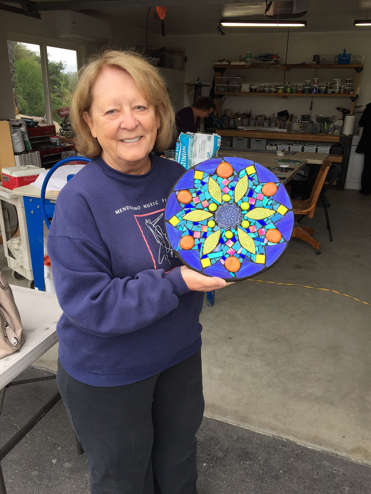 Mosaic has been found to be very therapeutic for the body, mind and soul, is a great stress reliever, and students experience a deep sense of personal freedom and accomplishment in this process. The environment in the studio is very nurturing and there is a tremendous sense of comraderie that has developed that you can be a part of.