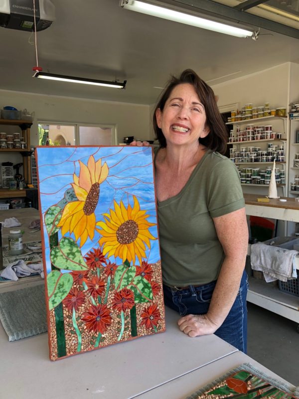 There are so many creative projects in process in the studio – a variety of wall pieces, tables, mirrors, mandalas, garden art pieces, a large “Tree of Life”, and totems. On Tuesdays, you may choose your own project or, as always, I have ideas for projects ready for you if you prefer. Not only will you leave with a wealth of information, but you will also feel refreshed and renewed as you take tiny pieces and turn them into something beautiful.
