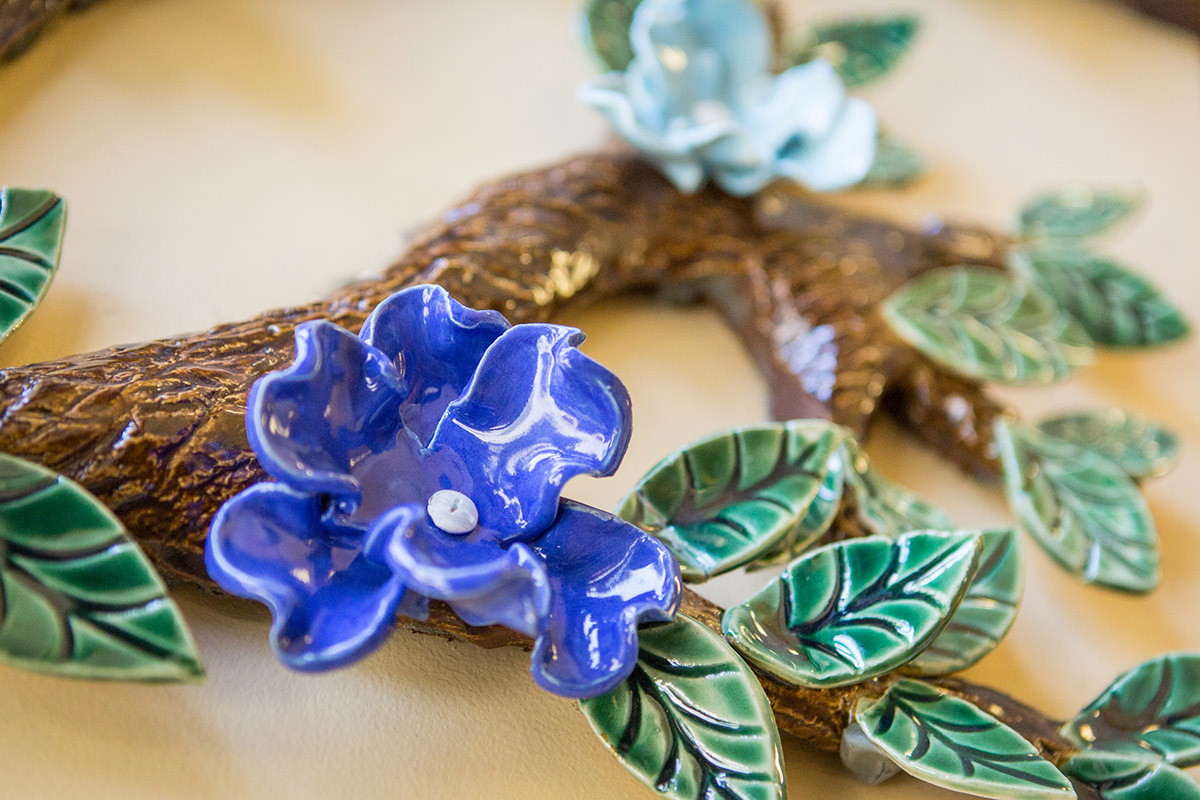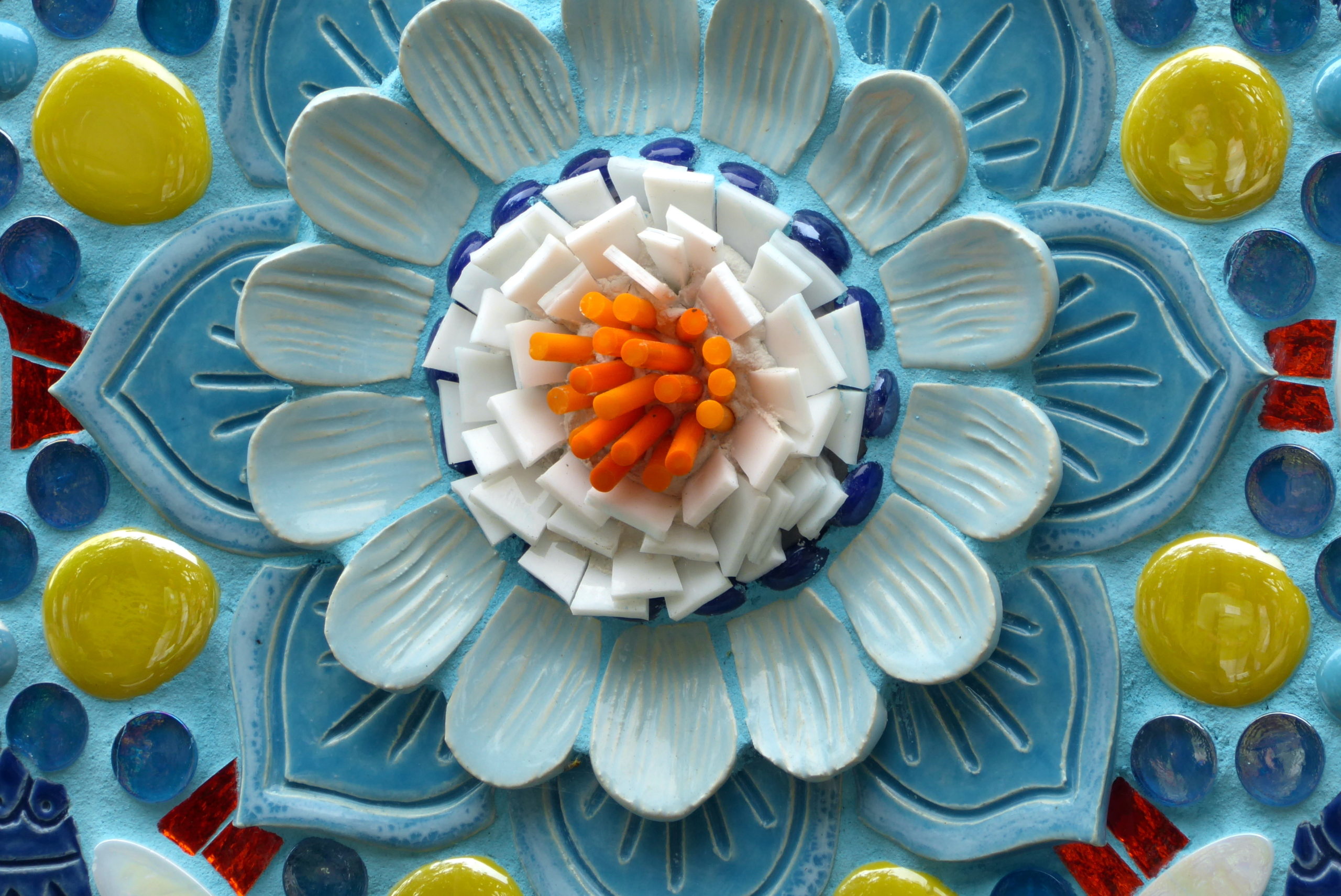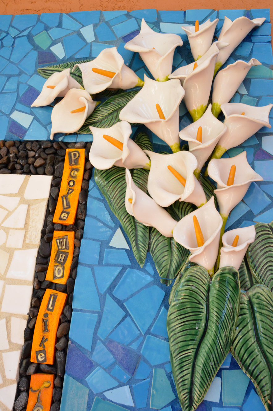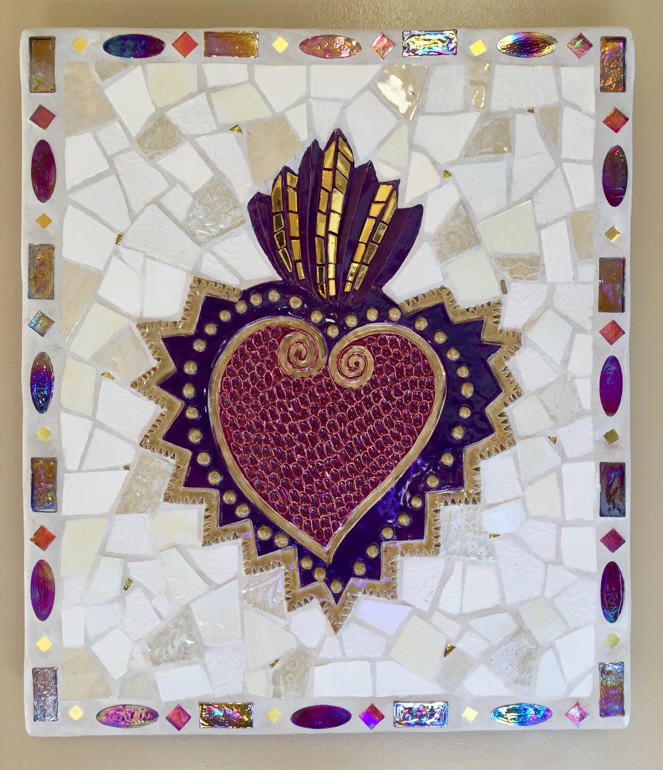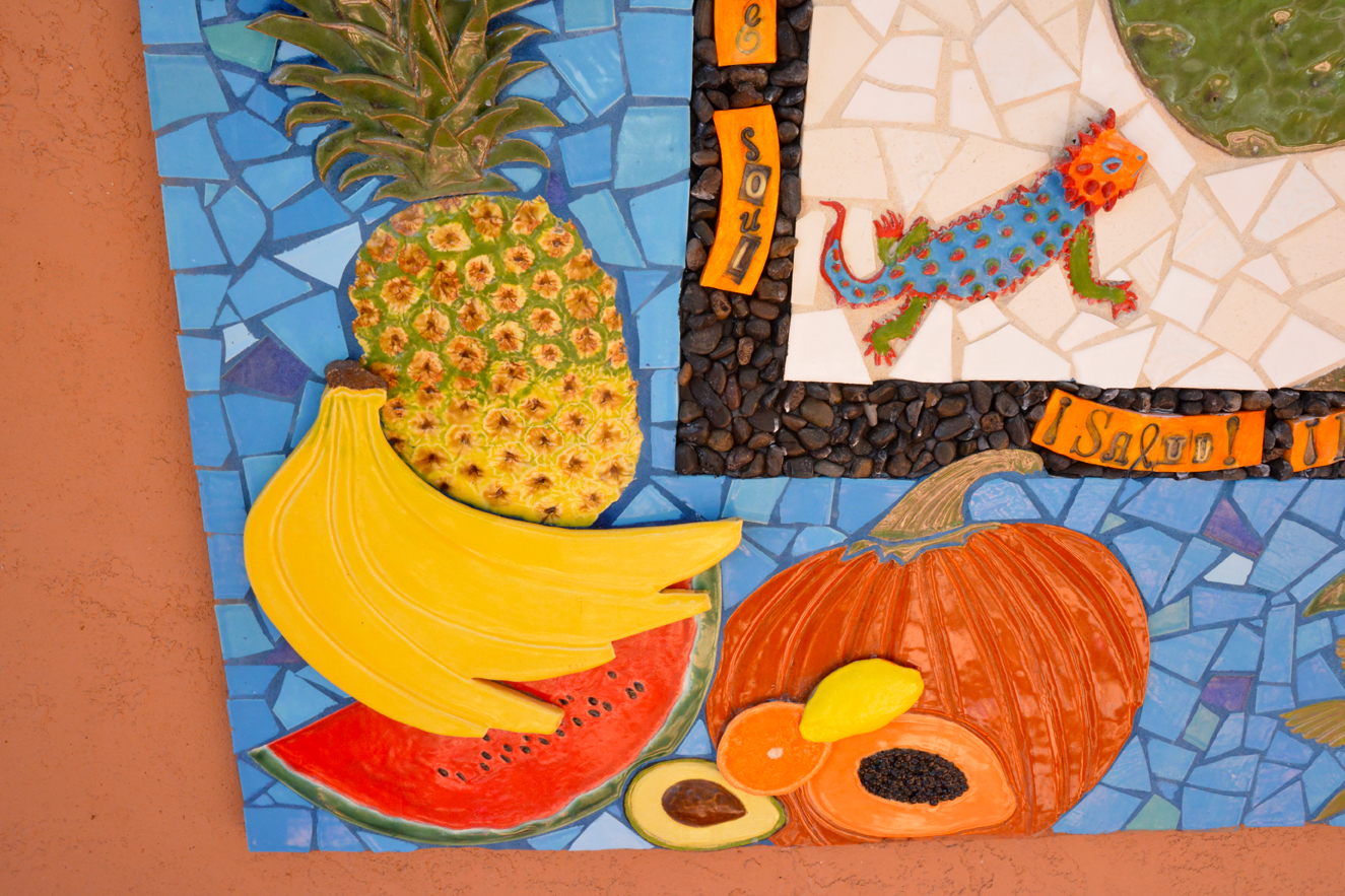 Don’t miss out on this super fun class. On day one, Jan 25, we will begin with a field trip to see a couple of installations I have done for clients here in my neighborhood. Each of them have quite a bit of handmade tile as well as hand built realistic objects and many other examples of how I use my clay creations in my mosaics. After the field trip, I’ll demonstrate how to construct a variety of the objects – realistic work as well as abstract pieces. Methods covered will include hand formed pieces as well as stamped and rolled designs. In addition, I will go over methods for handling the clay, the drying process, and some of the logistics for loading and firing the kiln.