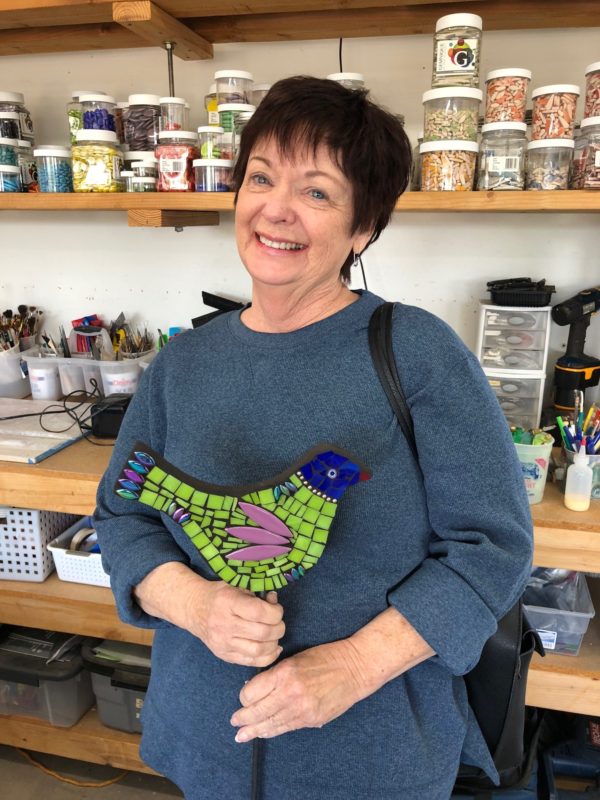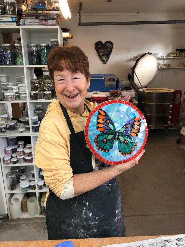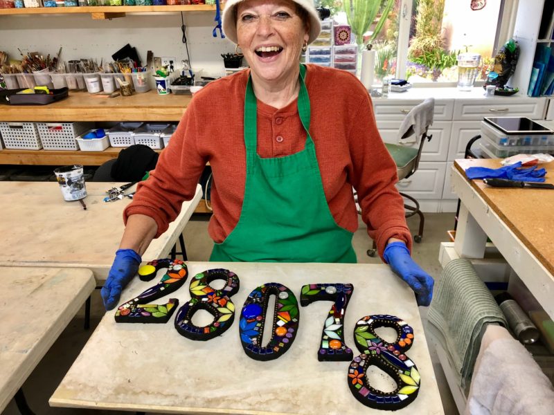 Pick your time and date. One on one time via Zoom is a great way to work on a project with guidance while sheltering in place. You pick your project idea and purchase materials either from my Etsy shop or you can come by and pick things up here at the studio, including a substrate for indoors or outdoors, glass, ceramic tiles, thinset, grout, mesh, or whatever you need. I’ll even offer tools for your use for a minimal deposit. Class time will be for one hour.